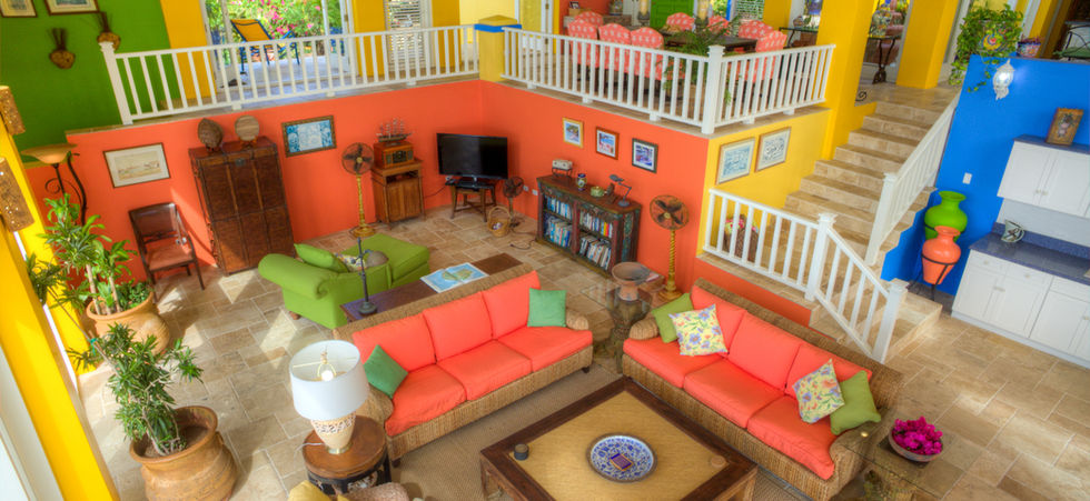 Jasmine Villa is located on the hill above the mile-long white sand beach of Long Bay at the western end of Tortola. This spacious two-bedroom villa is nestled in mature tropical gardens offering complete privacy. The colonial-style décor and authentic West Indian artwork complement the vibrant furnishings.